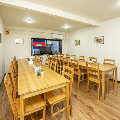2階は貸切対応で22名~最大30名様までご利用可能☆大人数でもゆとりあるスペースで、心地よい時間を提供します。本格カンボジア料理とドリンクを片手にゆったり交流できる空間は、会社の集まりや同窓会など様々なシーンにぴったり♪にぎやかさの中にも落ち着きを感じられます。